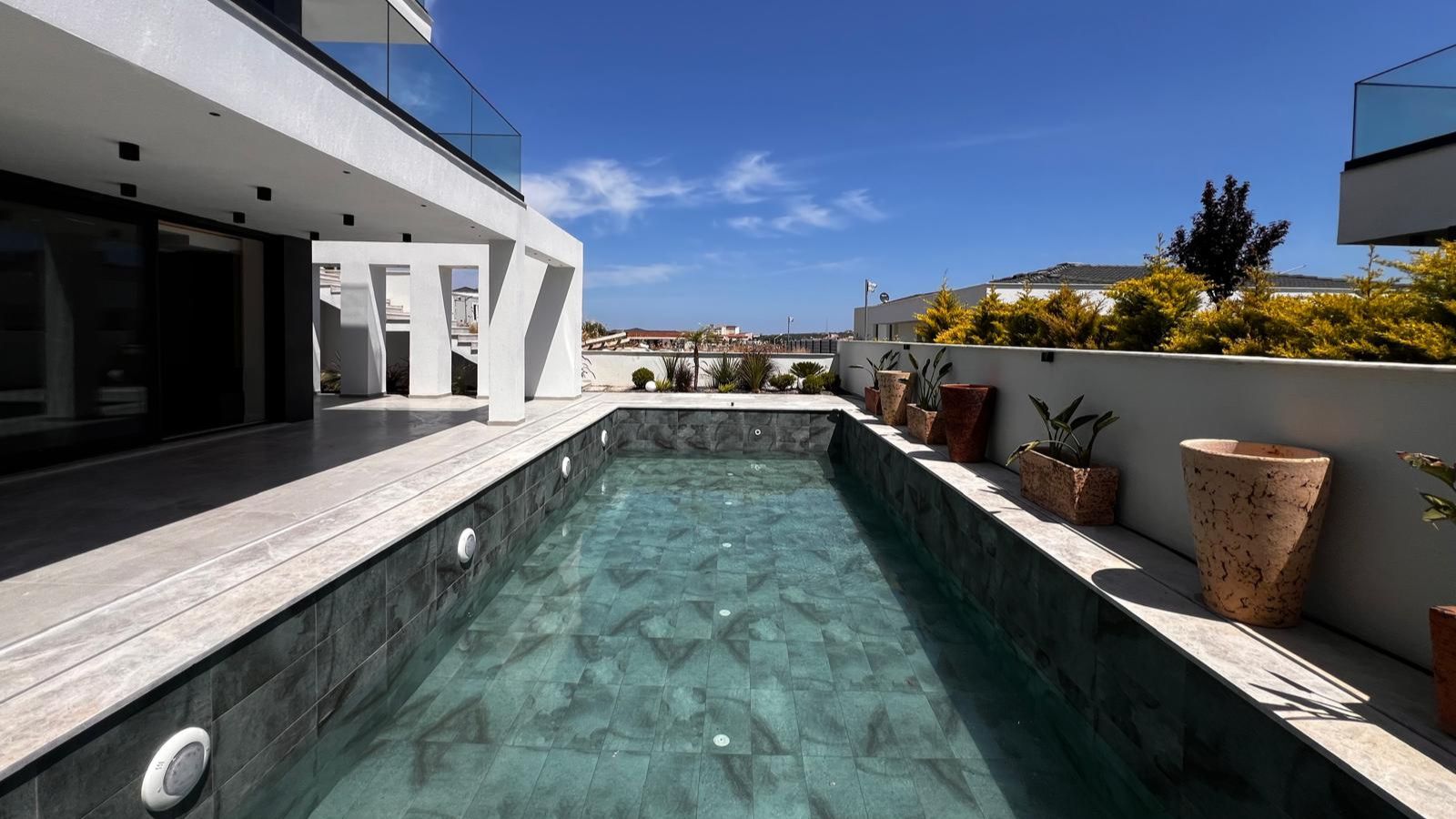 Step into refined luxury with this brand-new 6+1 detached villa in Çeşme Dalyan, set on a 600 m² private plot just minutes from the world-famous Ayayorgi Bay. With 400 m² gross / 350 m² net living space, this stunning triplex villa combines modern architecture, smart technology, and high-quality imported finishes for a lifestyle of elegance and comfort.